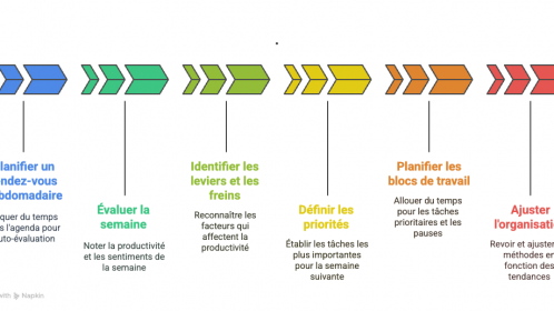 1. Fixez un rendez-vous hebdomadaire dédié : Bloquez 15 minutes dans votre agenda (vendredi après-midi ou lundi matin) pour cette auto-évaluation.